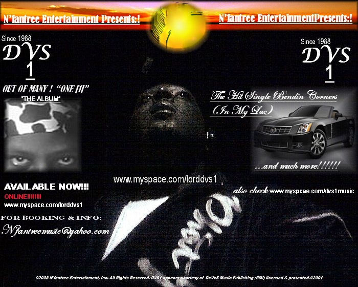 [color="blue"][p][indent][i]The Girls called him Frosty, cause he was so cool wit it. People who fly at the mouth wit it and disrespectful, found out why they call him D.V.S.1. The real ones on the Streets and confinement who trully know him (and not HATING), treat him like the aire aparent. Hence, a gOD and the name Lord was commissioned. Dont trip on titles, do your due dilligence and check the credentials.[/i][/indent][/p][/color] [i][b][p]Writer, Producer, Publisher, Manager, Promoter, Indie Label Owner. Worked with numerous Music Industry Elites![/p][/b][/i] [u][b]Its Nothing To A Boss!!!![/b][/u] [color="cyan"][b][i]Visit "MY" Myspace For More Hits![/i][/b][/color] [color="red"][b]ADD ME! COPY AND PASTE!or CLICK links Below![/b][/color] [link="http://www.myspace.com"][b][u]www.myspace.com/lorddvs1[/u][/b][/link] [link="URL"]www.myspace.com/dvs1music[/link] [link="URL"]www.blackplanet.com/dvs1muzic[/link]