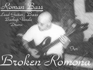 Broken Romona-We're all from the little town of Lumberton N.C...Our music varys with our moods.We write a little bit of everything.We figure why try to contain our creativity! On lead vocals & drums we have Carlton Scott.On guitars we have Roman Bass and on bass we have Jon Adcox.We've been playing together for 6 years,officialy since 2005.The Sessions CD was recorded in West Virginia at Roman's house.We had Walmart mics and a kick ass recording program called Cool Edit Pro.We made the best of what we had.We're in the workings on a new and much better album and were feeling angry...who knows whats to come!!!We've got better equipment now...condenser mic(GAD)...for recording..Roman has a custom Cort X electric guitar,a Ablene(Personlized by Roman for playability)acoustic guitar,Behringer V-tone amp (2-12"speakers)...Carlton has...A blue 6 peice(customized by Roman & Carlton)set of Pearl Drums,and a Peavy half stack(4 12"speakers) Jon has a Kay 4 string bass.So enjoy the music and take it however you will! BROKEN ROMONA