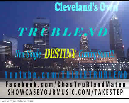 Music = Life! Check out our new single DESTINY and please leave comments!! It is [b]now[/b] available as a ringtone on Myxer.com/TruBlend! TruBlend was formed in the summer of 2003 in Cleveland, Ohio. The group started as a trio, but one member left to pursue other interests leaving the former trio a duo. With their smooth vocals and R&B sound, they have been compared with the old school R&B singers and have taken the city by storm and built quite a fan base. Between performances TruBlend is writing and producing songs for their first full length CD. They opened for national recording star Glenn Jones when he performed in Cleveland, and they have also performed in Chicago Ill. and Dayton, Akron and Columbus and Middlefield,Ohio. TruBlend consists Chas Nichols and Mateo Davis. Chas also produces TruBlend's music and is a member of the songwriting team that includes his wife Chris and singing partner Mateo. Neither member is a stranger to the stage, both having grown up performing in various church choirs, musicals and talent shows. A few of TruBlend's performances in and around Cleveland include; Rock and Roll Hall of Fame, The Hard Rock Cafe, Central State University BET TV Fashion/Talent Show, Village TV on Adelphia Cable, WTR TV on Time Warner cable, WERE FM 1300 Radio Show, Cleveland Intercity Yacht Club, American Heart Association Benefit Concert, Presidential Candidate John Kerry/Black Caucus Rally, 1st Place in a citywide Stars of Tomorrow competition, and numerous festivals and benefits.