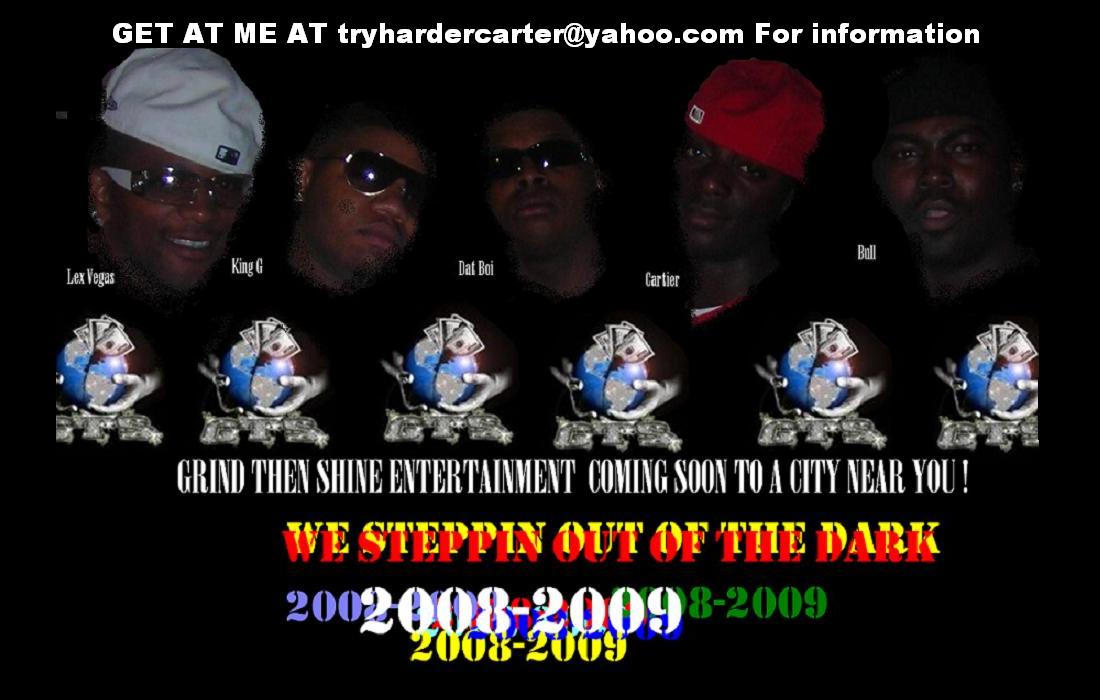 [b][b][i]This is Cartier of the GTS Click I've been doin this for a long time and there's one thing I know ... I LOVE THIS MUSIC GTS is runnin things down in Hawaii right now shout outs to mo love productions, no mercy productions, standalone ent., ruff rydas hawaii, and the whole GTS movement GANG which includes:[/i] GTS's URL is: http://www.unsignedbandweb.com/music/GRIND_THEN_SHINE_ENT. [color="red"][b]KING G - CEO / ARTIST CARTIER- LEAD PRODUCER / ARTIST [link="URL"]http://www.soundclick.com/cartier[/link] CASINO- PRODUCER/ ARTIST DAT BOI- ARTIST NICARICAN- ARTIST DAZZLIN DOLLAZ- ARTIST JESSE JAMES- ARTIST LADY REDD- ARTIST PLAYBOY- ARTIST BULL- ARTIST HUFF- ARTIST D ROCK- ARTIST ACE- PROMOTIONS[/b][/color] [color="darkblue"][color="yellow"]LISTEN TO OUR MUSIC TELL US WHAT YOU THINK AND REMEMBER WE A SECRET SOCIETY ALL WE ASK IS TRUST GRIND THEN SHINE ENTERTAINMENT ALL DAY -CARTIER 2007[/color][/b][/b]