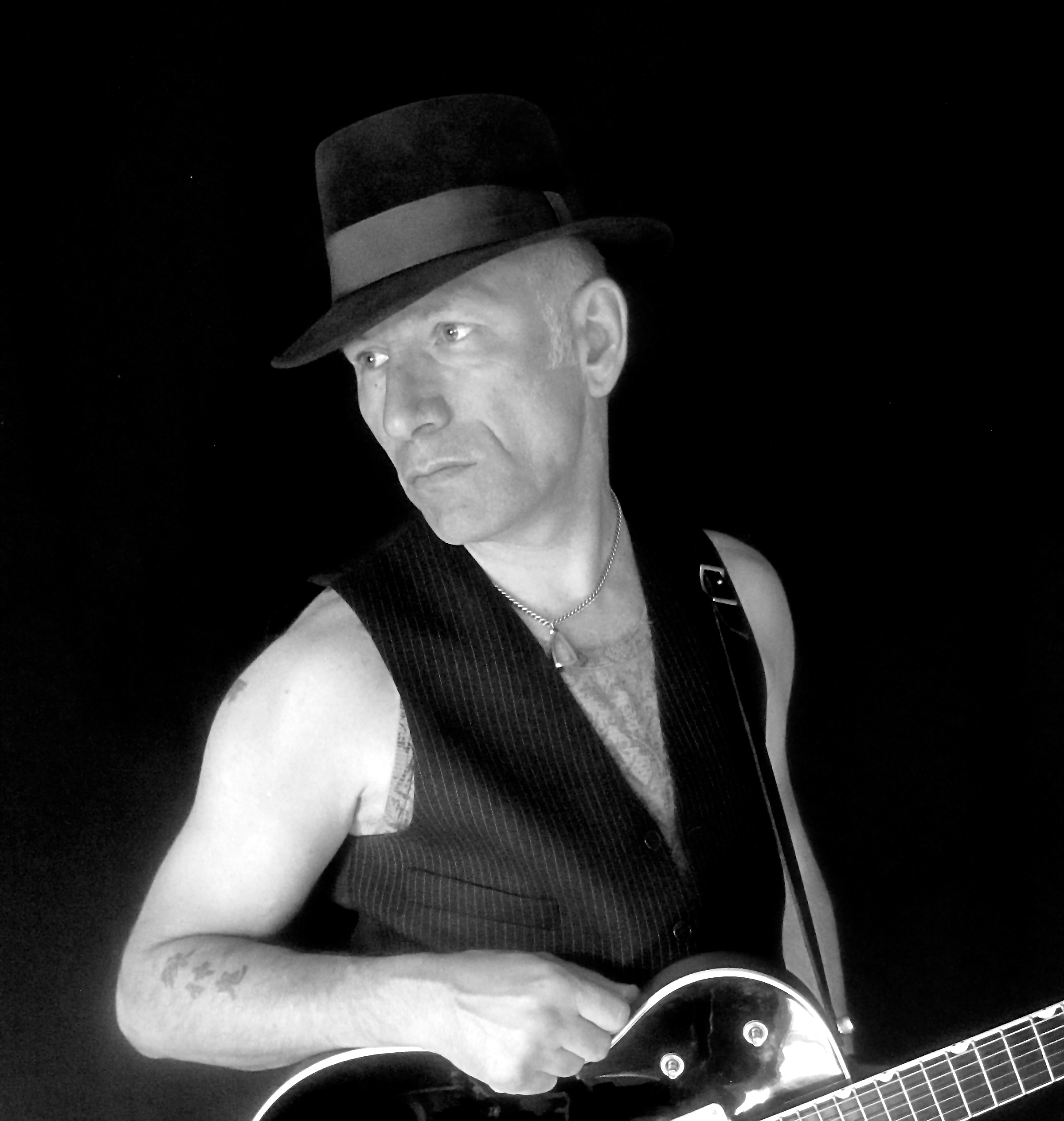 I'm a guitarist/percussionist/Composer/songwriter, living and working in Cornwall England.My original music is a mixture of ambient and ethnic influences fused with 70s style rock. Pop music it aint. I like depth and complexity, Jungian Psychology ,shamanism, magic and the shadowy coils of the unconscios mind. I tend to write about relationship and growth and healing. I find great beauty in the depths of the human psyche ( soul.) I performed all parts on both of the albums i'm promoting here, multi tracking and layering overdubs like ya do on projects like this. I love this kind of creative process because i always feel that i'm not entirely in control of where the track wil end up, so to speak. I write lyric and perform from the " stream of consciousness " perspective. On a more mundane level,I play covers in pubs and clubs which I still enjoy after some 20 yeas of doing it! I own some lovely guitars which i enjoy taking out to various types of gigs. My Gretcsh for the sit down Jazz/Blues gigs, my 75 Strat in the spit and sawdust venues where i'm gonna have to rock. I've done a lot of band, duo and solo work over the 15 years i've been a pro player, quite a bit of session and production work too. Inflences include Joni Mitchell, Shawn Colvin, Suzanne Vega and suchlike. On the guitar front... Love Dave Gilmore, Mark Knopfler, Eric Johnson, Robben Ford , Bill Nelson and Peter Haycock. I like Indian music a lot and have always enjoyed western/Indian fusion wherever it appears.