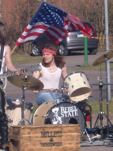 As we are a [b]Southern Rock band[/b], we use the [i]confederate flag[/i] quite frequently in our image. However, a few people tend to connect it with most things we don't. To us the flag stands for rebellion, rock'n'roll, and the Southern States. [b]Racism is something we take far distance from.[/b] Still, as mentioned, we play Southern Rock, and we are grown up on rock and country that comes from... The South. We would never give up the flag and change to something less offending, 'cause one day we might have built up a better reputation for it, and told the world what should be connected with that red, white and blue piece of textile with a cross and stars on it. www.rebel-state.com www.myspace.com/rebelstate70s