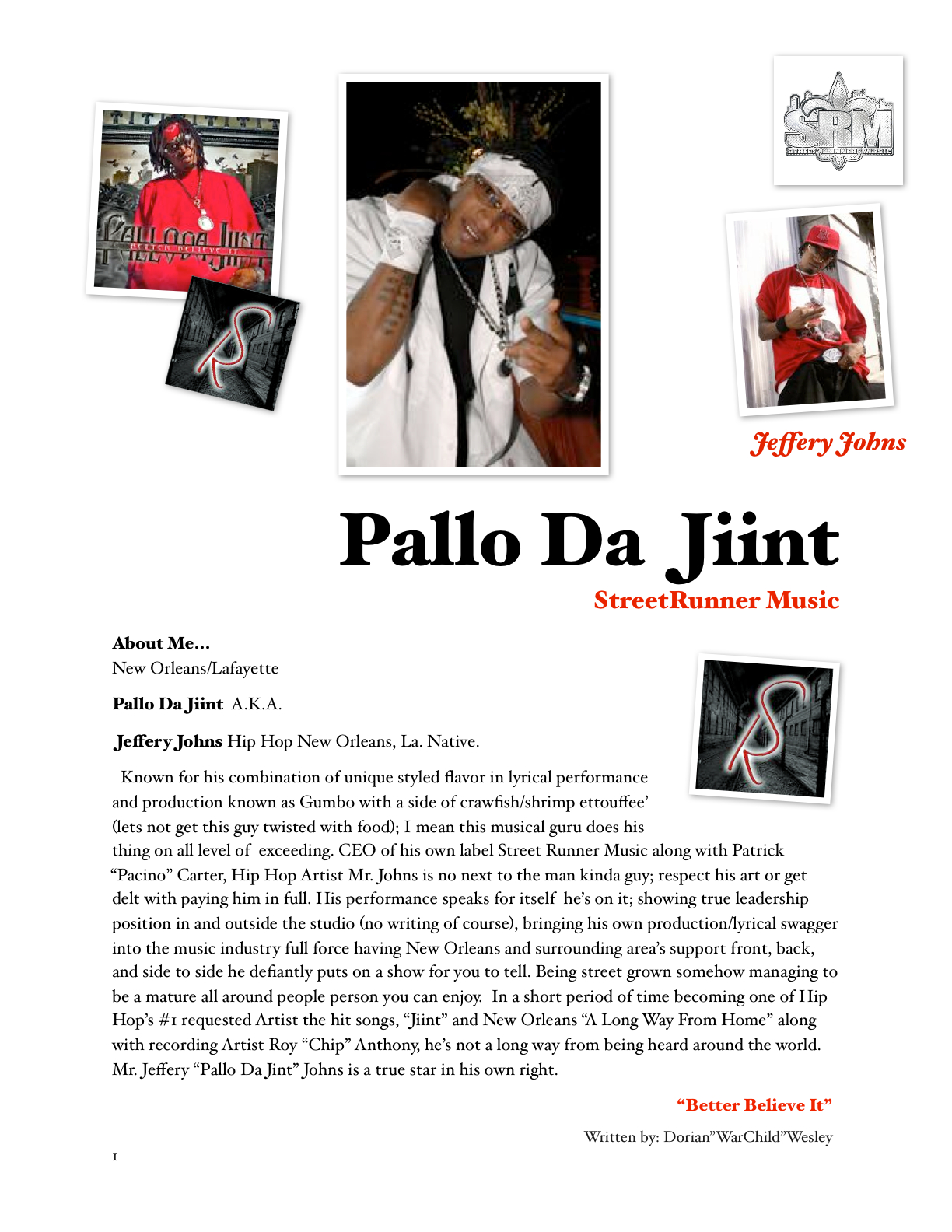 PALLO DA JIINT PALLO DA JIINT "SOURCE MAGAZINE;" Louisiana UNSIGN HYPE WINNER! (PALLO DA JIINT)ARTIST JEFFERY(PALLO) JOHNS A NEW ORLEANS ‘HIP HOP VET FROM NEW ORLEANS,LA,THIS ARTIST IS A COMBINATION OF FLAVOR BETTER KNOW AS GUMBO WITH A SIDE ORDER OF CORNBREAD DRESSING (DON’T GET IT TWISTED)WITH ‘FOOD’ I MEAN ‘MUSIC‘.PALLO HAS BEEN WORKING SIDE BY SIDE WITH VARIOUS ARTIST AND GROUPS FOR THE LAST TEN YEARS,DOING PRODUCTION WITH THE “ARCHITEKS” FOR ARTIST SUCH AS LIL WAYNE, BG, MAGNOLIA CHOP, AN ‘ARMY’ OF LOCAL ARTIST “THAT TO SAY” (PALLO) IS WELL GROOMED AND READY FOR THE MAJORS.PALLO(‘DA JIINT‘)ALONG SIDE WITH (GEEDI ) FORMED THE GROUP (STREET RUNNERS).THE STREET RUNNERS HAS DROPED FOUR VOLUME’S OF MIXTAPES ONE IN PERTICULAR ‘VOL. 4’ WITH WAS HOSTED BY NOW PLATNIUM ARTIST ‘CHAMILLIONAIRE’ HAS BEEN SELLING OUT SINCE RELEASED IN 2005.PALLO HAVE BEEN IN THE LAB PUTTING DOWN FIRE HITS UNDER HIS LABLE (STREET RUNNER MUSIC) ALONG WITH HIS PARTNER PATRICK (PACINO) CARTER WITH AT LEAST 50 SONGS FOR THE ALBUM 10 ‘BANGER’ SINGLE TO CHOOSE FROM; PALLO IS ON HIS WAY TO ‘STARDOM‘. THE STREET RUNNERS (PALLO AND GEEDI)HAVE SHOT A VIDEO FOR THERE SINGLE (BACK OF DA CLUB)THREE DAY’S BEFORE HURRICAN KITRINA HIT AT THE ‘CLUB METRO’ IN NEW ORLEANS. (PALLO DA JIINT) IS KNOW GETTING READY TO SHOOT THE VIDEO FOR HIS SINGLE (JIINT) . ROI ANTHONY AND PALLO HAS THE NO.1 SONG IN NEW ORLEANS CALLED (LONG WAY FROM HOME) AND ALSO SHOT A VIDEO FOR THE SONG THAT HAS BEEN HELPING PEOPLE RECOVER FROM THE STORM.WITH OTHER FEATURES ON THE ALBUM: ARTIST SUCH AS UGK’S(PIMP C),VICIOUS,(COMIC VIEWS)BIRDMAN,CHOPPER CITY RECORDS BG,CHIP OF( MOHITZ ENTERTAINMENT),DJ DOLBY DEVIOUS,DJ CHILL,BIG RAMP,LADY KYM ,BOSSMAN,DGC,NAHVELL AND MANY MORE THIS ALBUM PALLO DA JIINT‘S( ‘JIINT UP‘) IS A ‘CERTIFIED’ SOUTHERN CLASSIC.NOW AS FOR MUSIC PRODUCTION IT LIKE THE STREET HUSTLERS CALL IT (DAT WORK),WITH ALL PRODUCTION DONE BY (PALLO), ROI(CHIPS)ANTHONY OF MOHITZS ENT,‘NAHVELL’ OF STUDIO 1819, 2 TRACKS FROM ‘DOLBY DEVIOUS’ ‘GET IT RIGHT’ MUSIC LOVERS WILL NOT BE DISAPOINTED.STREET RUNNER MUSIC HAVE RECENTLY RAPPED THERE COMPANY’S FORD EXCUERSSION AND SOON STARTING RADIO AND STREET PROMOTIONS.WITH ALL THIS SAID AND DONE (PALLO DA JIINT) HAVE THE KEY TO (LOCK) AND (UNLOCK) THE RAP GAME.[color="red"][/color][color="red"][/color][b][/b][i][/i][u][/u][hr][indent][/indent][code][link="URL"]Powered by iSOUND.COMPALLO DA JIINT on iSOUND.COM
