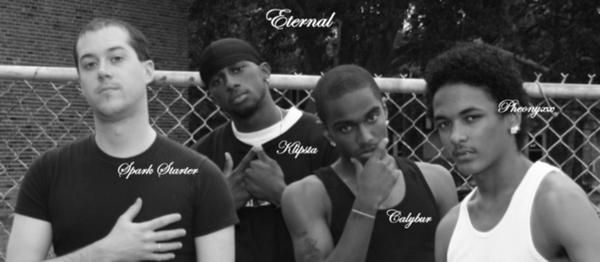 You can Contact us at ... 1. [email protected] 2. www.myspace.com/eternalforever04 Eternal: The Arrival The legacy began in 1995 with three childhood friends; DeJuan "Smoke" Banks, Dominique "Klipsta" Griffin, and Cleo "Calybur" Dyson. Not yet a group they all usually free styled over any beat the could find ranging from movie theme to video game instrumentals. Soon they would use instrumentals from hip hop artists and make mix tapes. In 1999 Smoke and Calybur decided to form a group and called themselves "S-n-S" (Calybur name being S-Calybur at the time). The two continued to freestyle over instrumentals and have fun with what they where doing. Late 1999-2000 Calybur and Smoke decided to take music seriously. Klipsta then joined the two and they came up with the name "Eternal". The name "Eternal" originated from their influence of Bone Thugs N Harmony's Album "East 1999 Eternal". The name also stating the bond is real and they will last forever. The group decided to work on their craft, lyrical abilities, flow, creativity, chemistry, and versatility before entering the industry. A few years had pasted and they all advanced in their own areas. Smoke advancing more in his free styling ability, Calybur in his lyrical ability, and Klipsta in his creativity. As the group became stronger, the trio formed a bond that could not be broken. In the summer of 2003 Smoke and Calybur became even closer due to Smoke basically staying the summer Calybur. Towards the end of the summer Calybur went out of town for Family Reunion in which Smoke wanted to go but couldn't and returned home. The group took a huge hit that summer when Smoke was killed in a hit and run incident. Calybur found out the news while out of town and called Klipsta telling him what happened. Feeling as if they lost a brother, Calybur and Klipsta took a break to get their head together and to become stable. Some time after the incident, Calybur and Klipsta regrouped and dedicated a mix tape to their lost brother. Soon after the duo got back together, Calybur, through prayers, spoke with Smoke. Smoke told Calybur not to give up and to make his dream a reality and to add on to the group in numbers. Calybur told Klipsta what he experienced and Klipsta suggested a good friend Floyd "N-Fa-Red" Bland to join the group. That quickly fell apart due to N-Fa-Red abilities and dedication. They decided not to rush for the new member and to work on their chemistry musically together. Soon Calybur and Klipsta ask two childhood friends Came'Ron "Pheonyxx" Kelly and Leonard "Loyal" Hammond to join the group and they did. Klipsta came into contact with some individuals in the industry who were interested and ready to sign the group, however the group declined due to the conditions of the contracts. The group continued to work hard at their music and continued to grow. Loyal realizing that his passion wasn't with music departed from the group so he wouldn't be a burden to Eternal. The newly formed trio started developing a new chemistry and harmony within the group. During the Summer of 2004 they recorded their first songs "Bounce Wit Me", "Seek-n-Destroy", and "Midnight Temptation". The songs were well received in the hood, but the group felt as if they needed more time to work on their craft. In 2006 the group felt as if they were ready to record more songs. "I Ain't Da One" a club banger, "I Wanna" a slow jam for the ladies, "That's How We Roll" a honest subject matter of life and "Eternal (Forever)" a song about true friendships were songs that the group recorded during that year. They now feel as if they are growing more and more and are reaching their goals of arriving in the music industry. In the summer of 2006 the group was invited to Chicago for the G1 Music Conference. June 30th 2006 they headed out to Chicago to attend the Generation One Music Conference where they planned to achieve their dreams. The group arrived in Chicago with no place to stay and not enough money for a hotel and the group walked the streets and slept outside. The day came for the conference and the group attended and showed their music to three A&R executives. Everyone was feeling there music and style. There they came in contact with Vincent Carroll from Vegas Style Entertainment and the rest is history. During the summer of 2006 the group met a consultant by the name of Tony. Tony is more like a DJ and helps schedule shows. Eternal: Member Info 1. Name: DeJuan Banks a.k.a. Smoke The Truth (2/24/87 - 8/9/2003) Age: 19 Birthplace: St. Louis Short Info: Smoke was probably the best freestyle artist in the group. He always stayed writing and recording. He had a deep passion for music which carries on through the group. His flow was amazing and mic presence was one of a kind. He lyrics was real and powerful. He was for sure one of the greatest to do it. 2. Name: Cleo Dyson a.k.a. Calybur The Poet (6/24/87 - ) Age: 19 Birthplace: St. Louis Short Info: Calybur the poet & lyricist of the group. He has incredible lyrical ability and a nice flow to match. He keeps the bond with in the group intact. He provides an energy of leadership and inspiration to his group members. He contine to grow with himself and get more emotional with his lyrics. 3: Name: Dominique Griffin a.k.a. Klipsta The Wildcard (7/7/86 -) Age: 20 Birthplace: St. Louis Short Info: Klipsta is the life of the group. He brings the creativity and the element of surprise to the group. He also handles a lot work for the group. He has great lyrical ability and is also thinking of something crazy to help separate the group from the industry. He's very creative wit his style ... some like Andre 3000 of Outkast. He something fresh to the Game that's needed. 4. Name: Came'Ron Kelly a.k.a. Pheonyxx The Fusion (5/5/88 - ) Age: 18 Birthplace: St. Louis Short Info: Pheonyxx brings more versatility to the group and add more harmony. He has an amazing flow with good breath control. He used his abilities very well and shows that